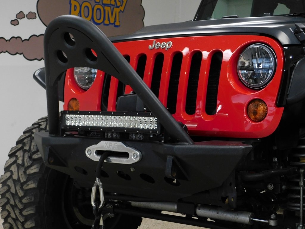 This 2012 Jeep Wrangler Unlimited Sport was modified in 2015 with the installation of a 392ci V8, a Centerforce clutch, and a six-speed manual transmission linked to a dual-range transfer case and Yukon Gear air-locker front and rear differentials. Additional equipment includes a black fastback-style soft top, a Borla exhaust system, a 6 Rough Country lift kit, Brembo disc brakes, 20 Spyderlock alloy wheels, 38 Toyo tires, a Smittybilt winch and front and rear bumpers, an LED light bar and headlights, a primered hood, Bushwacker fenders, LOD rock sliders, an aftermarket spare tire carrier, a receiver hitch, air conditioning, a rearview camera, and Pioneer touchscreen infotainment linked to a custom sound system. Finished in black over black cloth, the truck has 14k miles and was acquired by the selling dealer in 2025. This modified JK is offered by the selling dealer with build invoices, a clean Carfax report, and a clean New York title.
