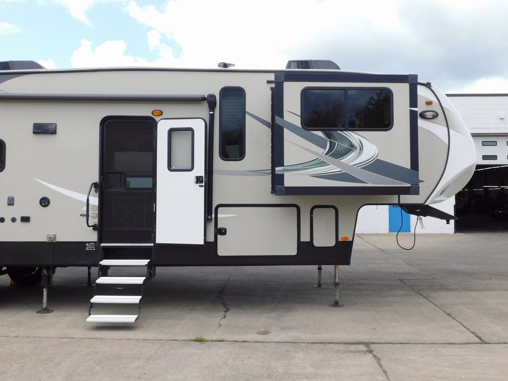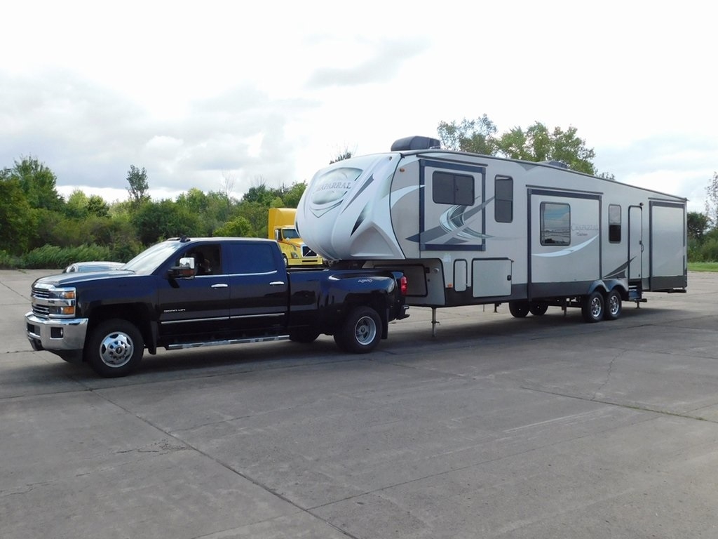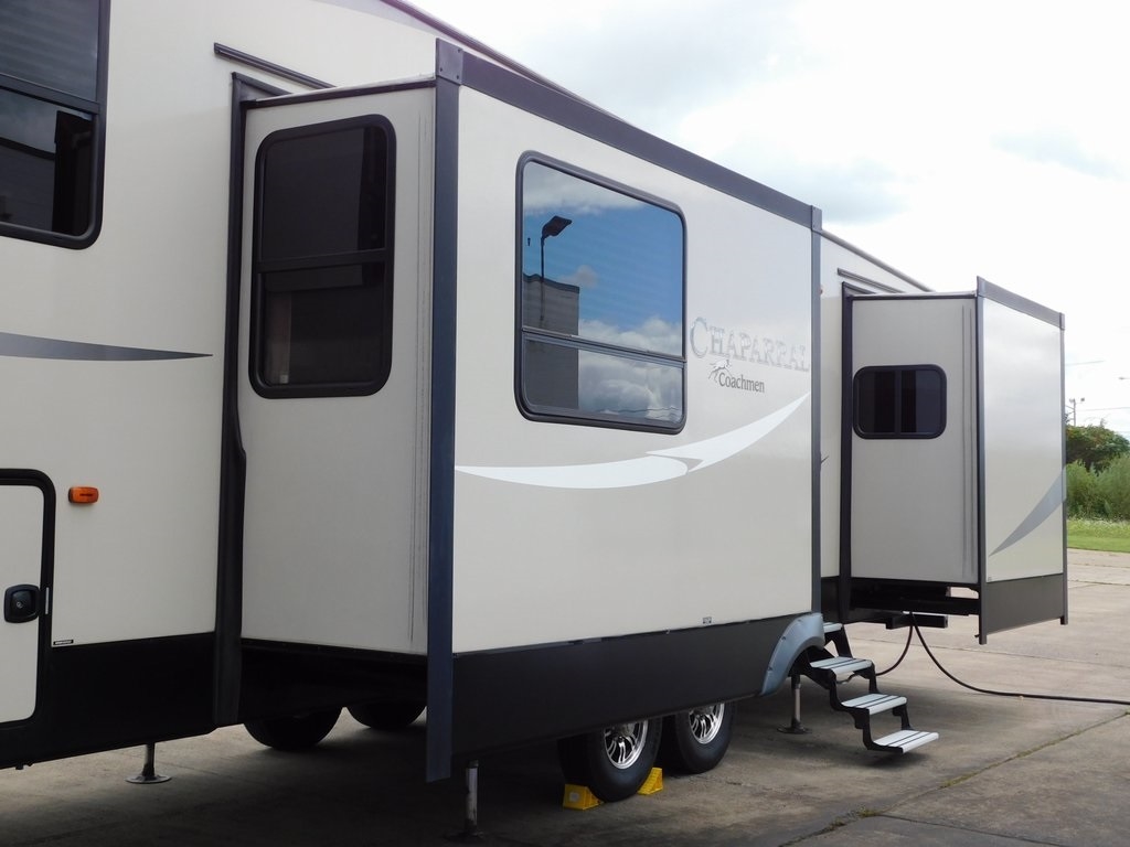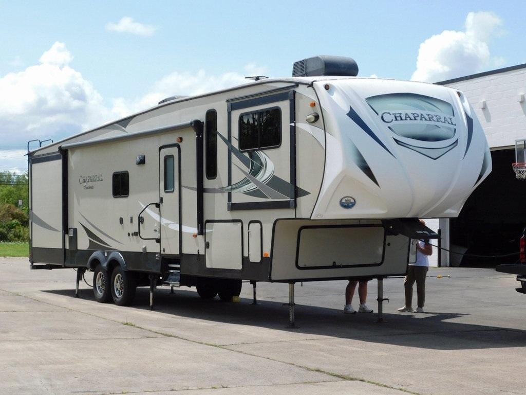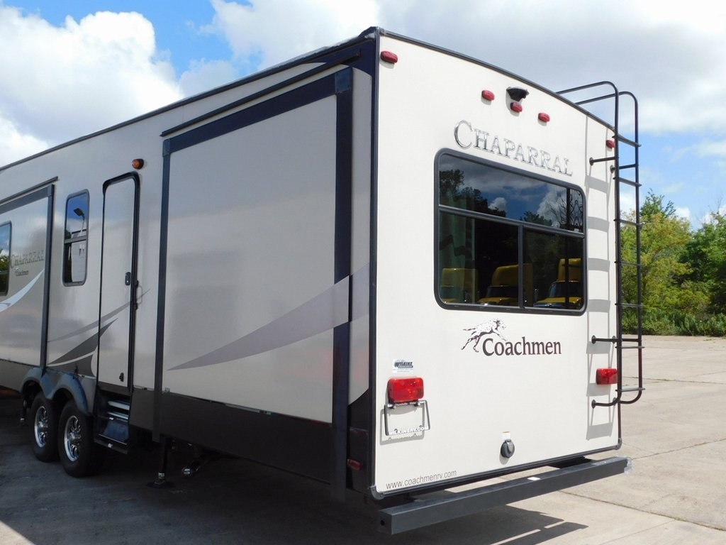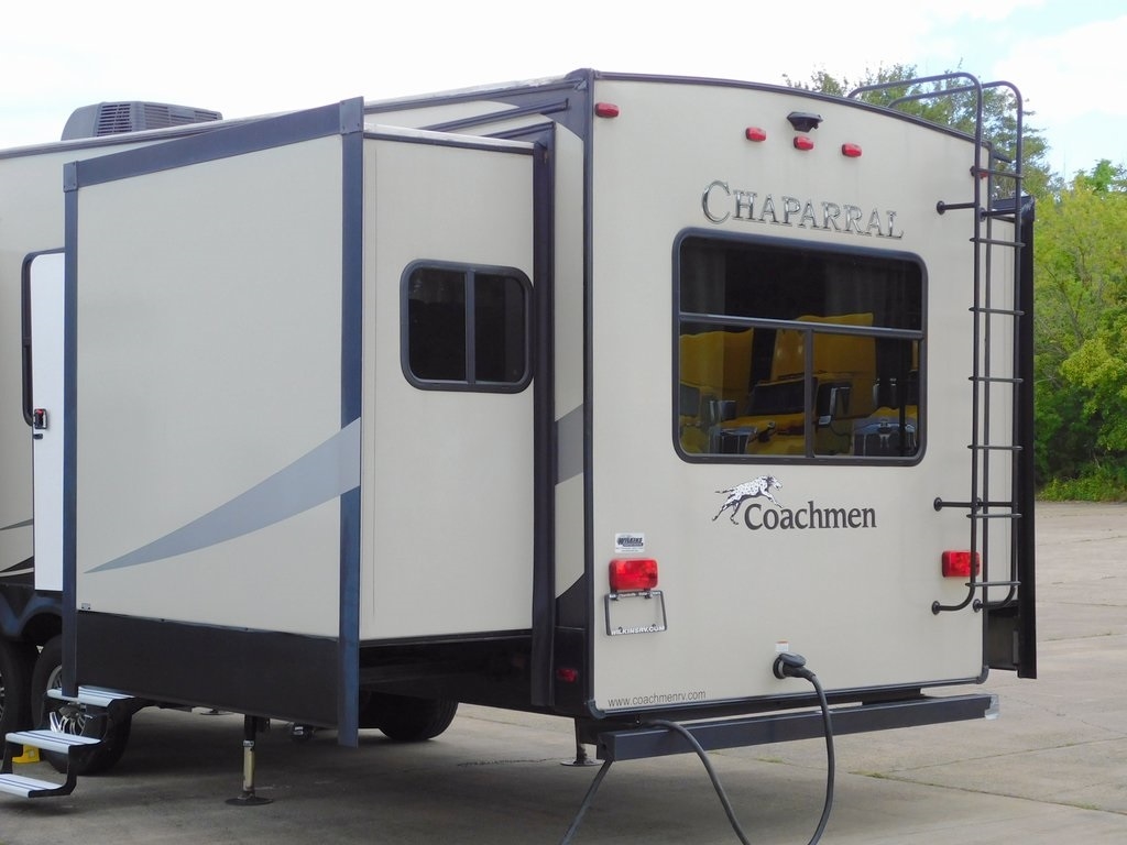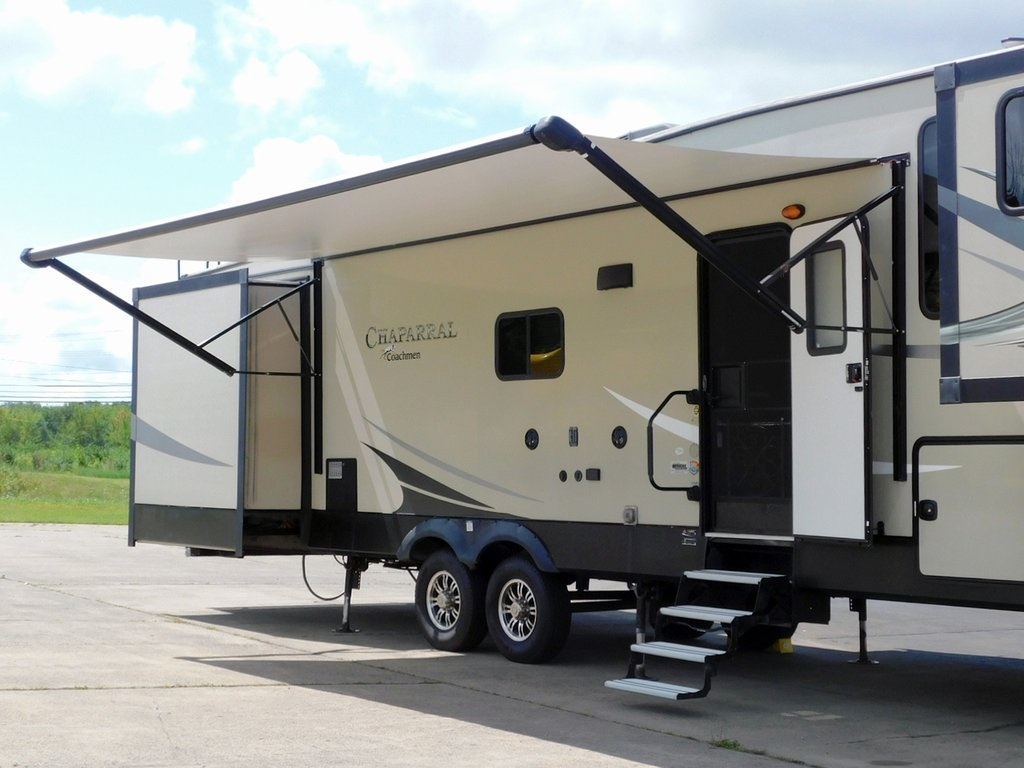 Call our sales team here at 716-649-6695 to schedule an appointment to view this Chaparral 370FL! Clean CARFAX! Beautiful 2018 Forest River Coachmen Chaparral 370FL Class A Fifth Wheel RV with all the amenities! New Awning never used, New Microwave, New F Rated Tires & New Spare. Lots of other service history available. Extra Clean call now! Motivated Seller. Truck and Trailer. Maximum Sleeping Capacity: 6, Length: 41' 9" (12.7 m), Extendable Dinette Table with 2 Chairs, Standard Shower, DVD Player, Television, Standard Master Bedroom, King Size Bed, Kitchen Sink, Front and Rear Power Leveling Jacks, Convertible Sofa Bed, Dual Reclining Love Seat, Mid-Size Refrigerator with Freezer, Oven/Stove/ 3 Gas Burners, 20' Power Retractable Patio Awning, GVWR: 14,500 lbs, Air Conditioning BTUs: 15,000, Porcelain Toilet, Bathroom Sink / Mirror / Medicine Cabinet and Greystone Electric Fireplace! Original equipment and options list available upon request!