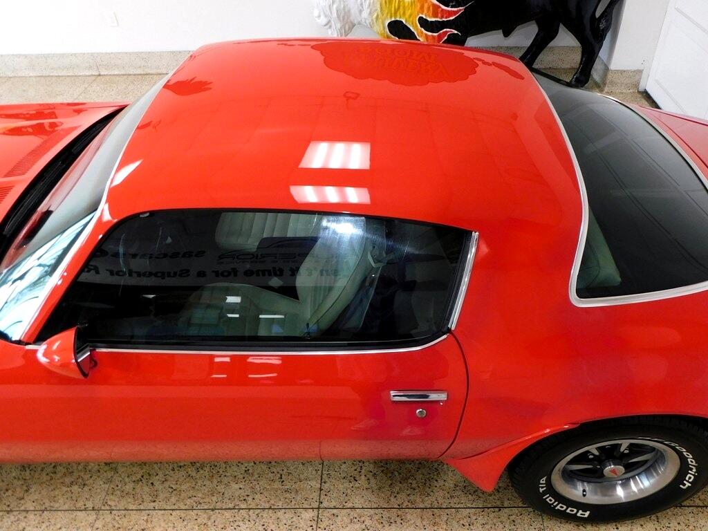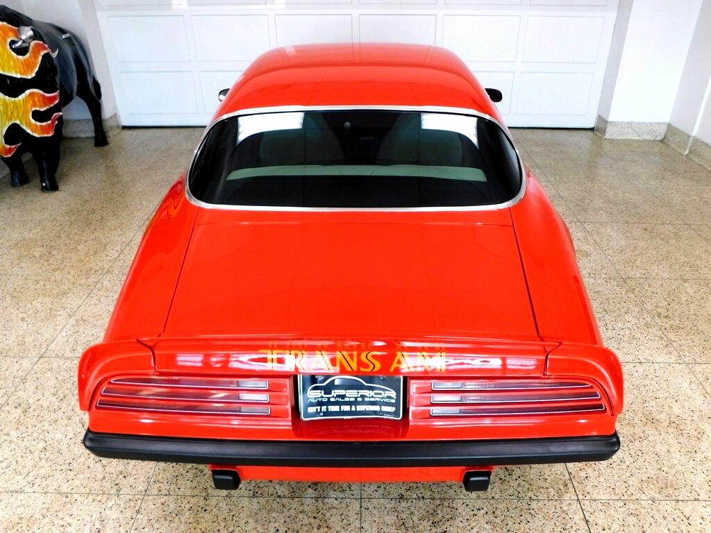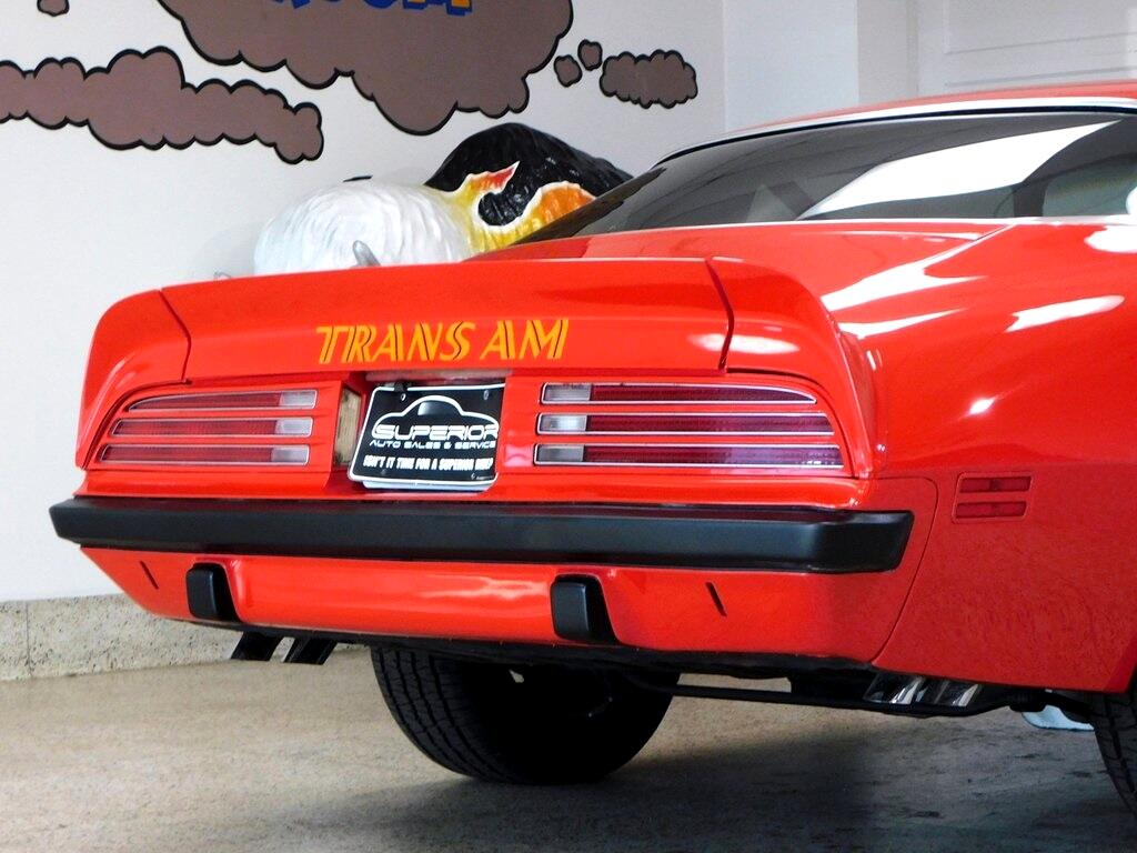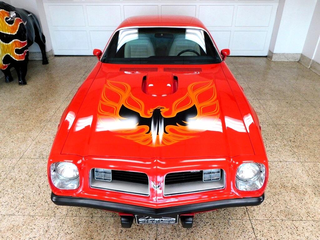 RARE 1975 Pontiac Firebird Trans Am 455 Coupe in Buccaneer Red over White/Black Interior! 4-Speed Manual Transmission, 15" Steel Wheels, Recently Replaced Tires, Shaker Hood, Air Conditioning, Hurst Shifter, Kenwood Stereo, Manufacturer's Literature, Copy of Window Sticker, Original Sale Documentation, Recent Service Records and more!