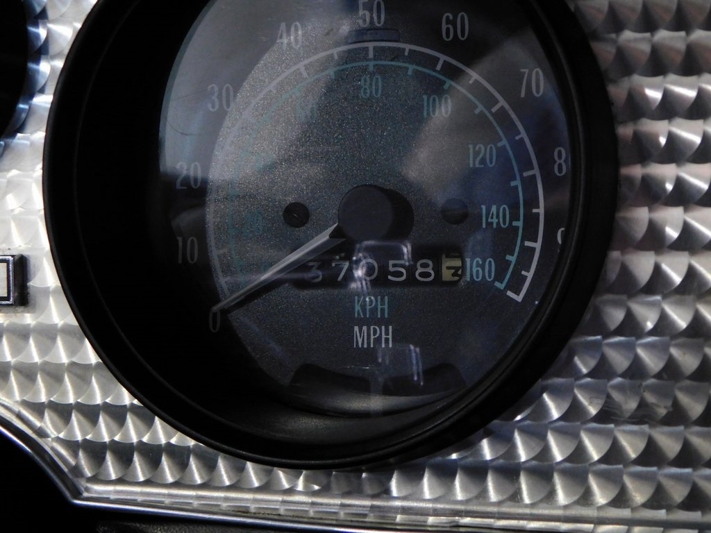 The three-spoke steering wheel sits ahead of a 100-mph speedometer, a tachometer, and gauges for oil pressure, coolant temperature, fuel level, and voltage. The five-digit odometer shows 37k miles, approximately 900 of which were added during current ownership.