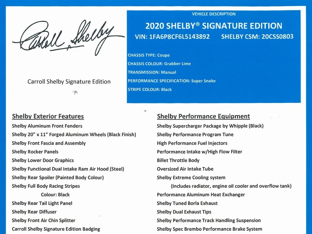WOW, Very Rare Carroll Shelby Signature Edition! 1 of 50 Produced World Wide, Whipple Super Charged Over 800 HP! Produced out of Shelby Windsor.