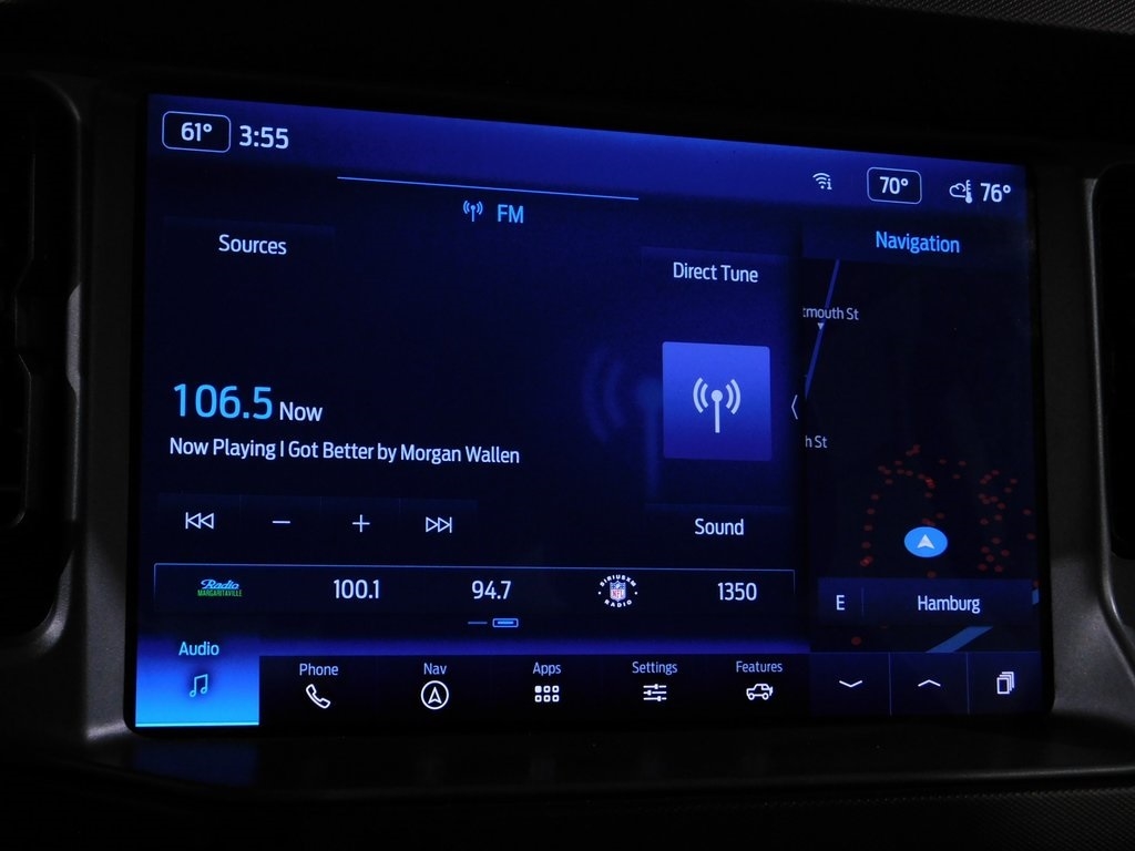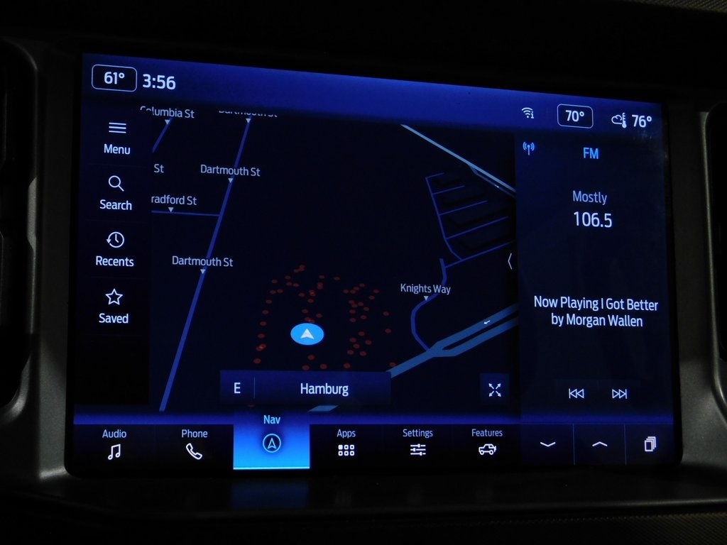 Ford Bronco Outer Banks Advanced 4WD SUV with an EcoBoost 2.7L V6 Engine, Apple CarPlay, Android Auto, Equipment Group 314A Lux Package, Sasquatch Package, GPS Navigation System, B&O Sound System by Bang & Olufsen, 360-Degree Camera, Rear Backup Camera, Heated Front Seats, Heated Steering Wheel, Exterior Numeric Entry Pad, Blind Spot Monitor, Cross Traffic Alert, Forward Collision Warning with AEB, Lane Keeping System, Lane Departure Warning, Driver Fatigue Monitor, FordPass Connect with Wi-Fi HotSpot, Wireless Charging, 17" Black High Gloss-Painted Aluminum Wheels, 2 Smart Charging USB Ports In Dashboard, Adaptive Cruise Control, Evasive Steering Assist, Front Dual Zone A/C, Front Parking Sensors, Position-Sensitive Bilstein Shock Absorbers, Sideview Mirrors, Rubber Floor Mats, SiriusXM Radio w/360L, Wireless Charging Pad and more!